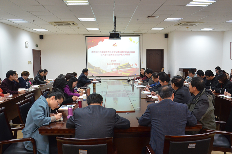 为进一步扎实推动党的十九大精神深入校园,李相然书记提出三点要求:一是迅速兴起学习宣传贯彻十九大精神的热潮,积极营造学起来、教起来,传起来、研起来、干起来、实起来的良好氛围;二是不忘初心,砥砺前行,努力做好本职工作,开创学院各项事业新局面;三是明确任务、树立自信,构建“和合尽责、学习创新”的学院文化。