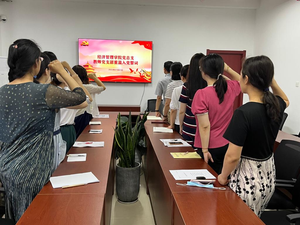 七一前后,经济管理学院、文法学院、机电工程学院、人工智能学院、外国语学院、教工第一、第二党支部等基层党组织均组织党员重温入党誓词,2021年以来新发展预备党员举起右拳,铿锵有力的声音响彻校园。知所从来,思所将往,方明所去,各级党组织组织师生回顾党的光辉历史,讴歌党的伟大成就,共同庆祝党的101岁生日,喜迎党的二十大胜利召开。