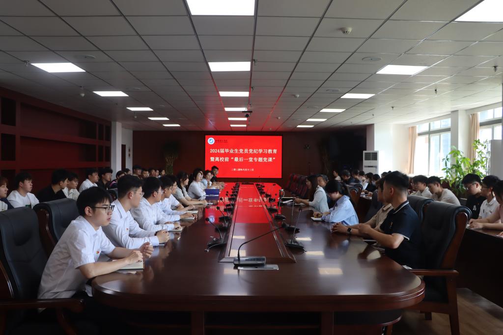 6月12日下午,一堂题为“强化责任担当自觉做学纪知纪明纪守纪的模范党员”的毕业生离校前最后一堂党课在烟台理工学院综合楼六楼视频会议室开讲。党课由学校党委书记盛国军主讲,党委委员、组织统战部长张琼玉主持,毕业生党员代表40余人参加党课学习。