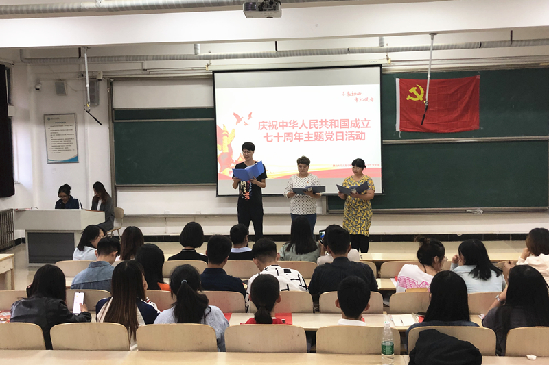 9月23日下午,中文与法律系党总支学生党支部于一教103进行“不忘初心、牢记使命”主题教育暨庆祝新中国成立七十周年主题党日活动,学生党支部书记陈秀慧,组织委员辛佩恕,教师党员裴鹤以及30名学生党员参加了此次主题党日活动。
