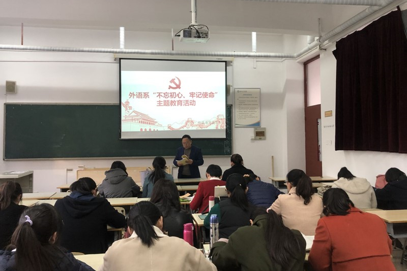 为扎实推进“不忘初心、牢记使命”主题教育,外语系党总支于11月14日在一教312开展主题教集中学习,外语系全体党员参加了此次会议。