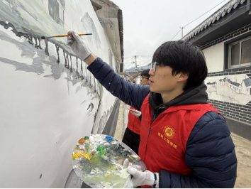 党员师生志愿者们化身“乡村画师”,在选定的墙面上展开创作,运用丰富的色彩和细腻的笔触,描绘出温馨的邻里场景以及充满活力的青春元素。每一笔、每一线都倾注着对乡村的热爱和对美好生活的向往,原本单调的墙面瞬间焕发出勃勃生机,成为一道亮丽的文化风景线。志愿者们在创作过程中相互协作、共同探讨,不仅展现了专业的绘画技能,更体现了团队合作精神。